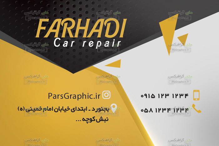 دانلود فایل لایه باز PSD کارت ویزیت ارائه انواع خدمات اتو مبیل های ایرانی و خارجی اگر عاشق خودرو بوده و از تعمیر کردن و کارهای دستی و فنی لذت می برید، این شغل می تواند برای شما مناسب باشد. خودرو و خودرو سازی از صنایع مهم در هر کشوری می باشد. کارشناسان و متخصصان زیادی با این صنعت در ارتباطند. مکانیک و تعمیرکار خودرو یکی از آنها می باشد. هر فردی که خودرو داشته باشد، حداقل چندین بار گذرش به تعمیرگاه خودرو می افتد. مکانیکی خودرو بازدید، تشخیص و رفع عیوب خودرو می باشد. مکانیک خودرو فردی است که به صورت عملی یا علمی با انواع تعمیرات خودرو آشنایی داشته و به تعمیر و سرویس انواع خودروها مسلط است. او همه بخش های مکانیکی و الکتریکی خودرو از موتور و سیستم اگزور تا سیستم های تهویه و امنیتی خودرو را به خوبی می شناسد.مشاهده فایلهای مشابه در همین سبک : دانلود فایل لایه باز PSD کارت ویزیت ارائه انواع خدمات اتو مبیل های ایرانی و خارجی