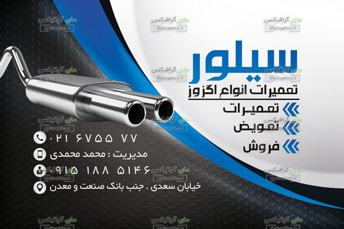 مشاهده فایل‌های مشابه در همین سبک : دانلود فایل لایه باز PSD کارت ویزیت اگزوز سازی