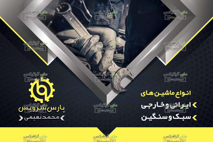 دانلود فایل لایه باز PSD کارت ویزیت تعمیر گاه اتومبیل زیبا. تعمیرگاه خودرو یا تعمیرخانه خودرو کارگاهی است که در آن تعمیرکاران خودرو و تکنسینهای برق، خودروها را تعمیر میکنند.[۱] نمونهای از کارهایی که تعمیرکاران در تعمیرگاه انجام میدهند عبارتند از: بازدید و تعویض روغن موتور بازدید و تعویض فیلتر هوا بازدید و تعویض شمع تعمیر و بازدید موتور تعویض تسمه تایم تعمیر و بازدید گیربکسمشاهده فایلهای مشابه در همین سبک : دانلود فایل لایه باز PSD کارت ویزیت تعمیر گاه اتومبیل