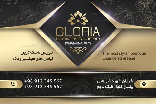 این بار یک فایل لایه باز PSD کارت ویزیت پوشاک زنانه مدرن و شیک را برای شما تهیه و به نمایش گذاشته ایم.در کادر طلایی این کارت ویزیت تمامی مشخصات را برای شما مورد استفاده قرار داده ایم.مانند ادرس،شماره،و دیگر مشخصات ظاهری و...کارت ویزیت چیست ؟