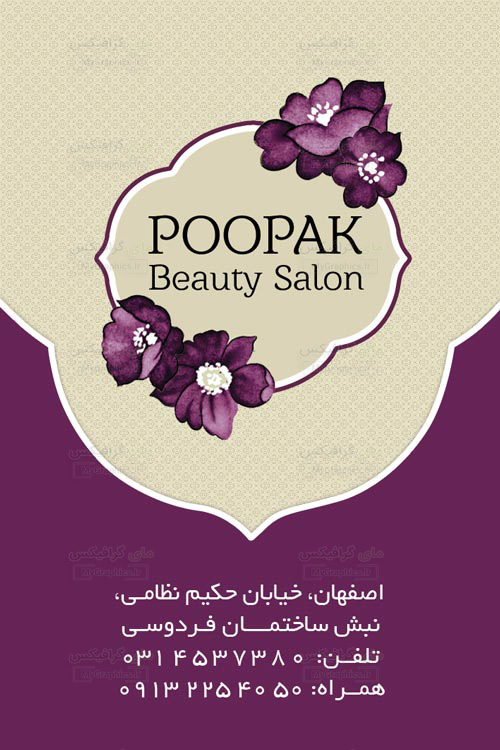 مشاهده فایل‌های مشابه در همین سبک : نمونه کارت ویزیت آرایشگاه زنانه و سالن زیبایی